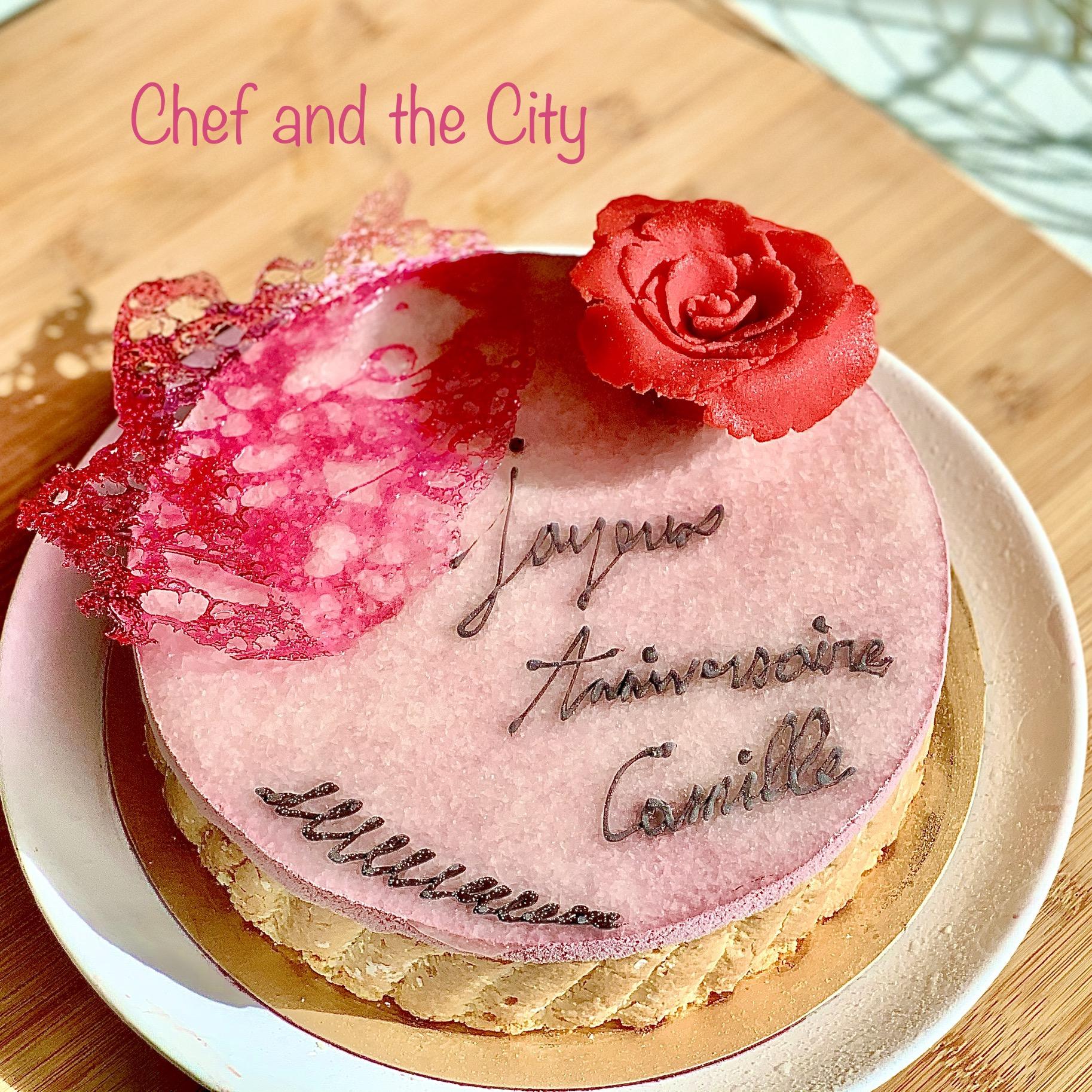 Vous apprendrez la technique du biscuit cuillère, ses disques, sa cartouchière, sa mousse onctueuse à la framboise... ses framboises fraîches, un glaçage neutre ou coloré et des fruits frais dessus, un peu, beaucoup, comme vous le voudrez, et pourquoi pas une décoration en pâte d'amande, en forme de rose, ou une opaline en glucose, une écriture au cornet de chocolat... le tout comme de vrais professionnels...